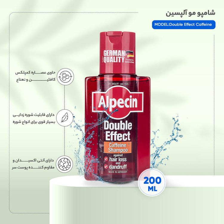 شامپو ضد شوره و تقویت کننده مو آلپسین مدل Double Effect Caffeine حجم 200 میلی لیتر