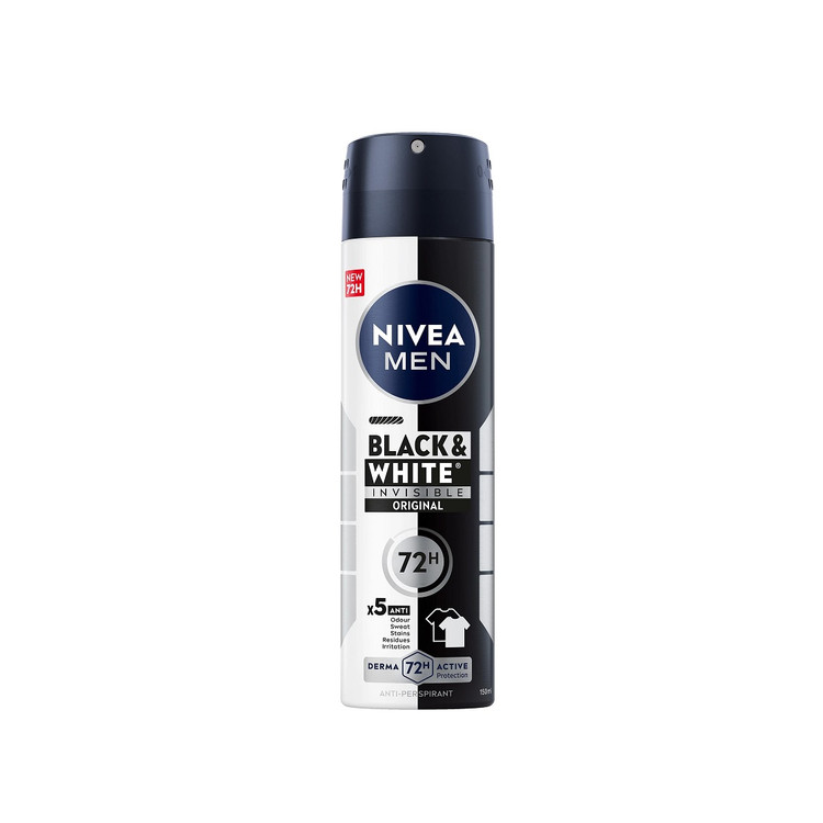 اگر به دنبال یک اسپری ضد تعریق حرفهای هستید که علاوه بر کنترل تعریق، از لباسهای شما نیز محافظت کند، اسپری NIVEA Invisible Black & White Original بهترین گزینه است. این محصول با فرمولاسیون پیشرفته و تکنولوژی خاص خود، تا 72ساعت محافظت کامل در برابر تعریق و بوی ناخوشایند بدن ارائه میدهد و از ایجاد ۵ نوع لکه مختلف روی لباس جلوگیری میکند.