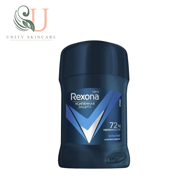استیک ضد تعریق مردانه Cobalt Dry رکسونا تا 72 ساعت ماندگاری دارد و بدون اثر گذاری لکه روی لباس می باشد و با فرمولاسیون بدون الکل ساخته شده است. استیک Cobalt Dry از برند Rexona رکسونا با رایحهای خنک، مناسب برای روزهای پرفعالیت آقایان است. این استیک با ترکیبات ضدتعریق، میتواند به مدت طولانی، بوی نامطبوع عرق را از آقایان دور نگه دارد. ضدتعریق مردانه رکسونا به شکل استیکی طراحی شده و با رایحه دلنشین و بهرهگیری از تکنولوژی موشنسنس به خوشبو شدن پوست زیر بغل و معطر ماندن آن در طی فعالیت روزانه کمک میرساند.